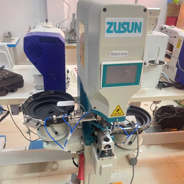 Máy bấm nút tự động ZUSUN là thiết bị chuyên dụng trong ngành may mặc, giúp tự động hóa quy trình bấm nút đồng, nút nhựa, hoặc nút kim loại trên các sản phẩm như áo quần, túi xách, giày dép, mũ nón...